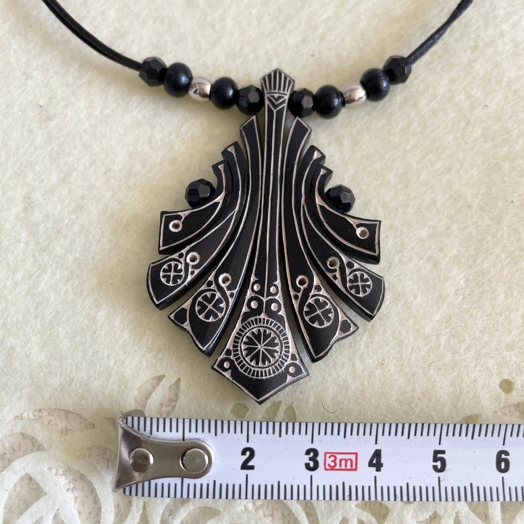 アイヌ紋様 木彫りペンダント NO.92 黒